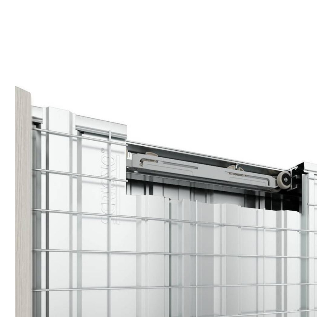Il sistema Doppio Freno garantisce lo scorrimento ed accostamento ottimale dei pannelli porta, riducendo ai minimi termini la forza necessaria per consentire lo sblocco dal sistema di ritenzione durante la chiusura.