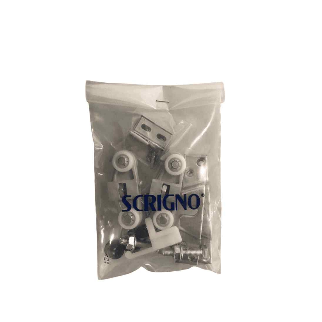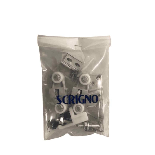 Il kit carrello Scrigno 80 kg è un prodotto Scrigno originale e comprende gli accessori necessari per il montaggio dell'anta scorrevole.
