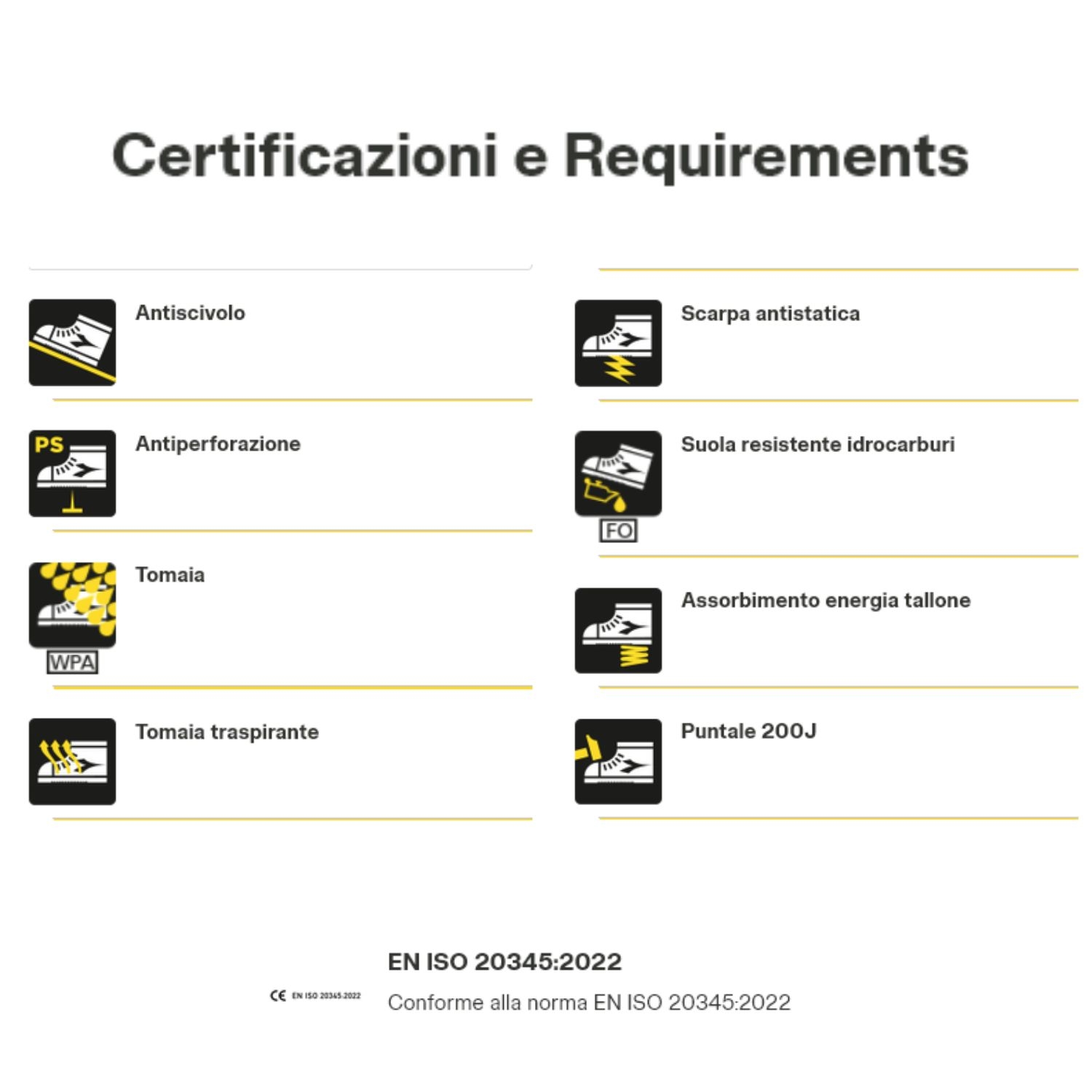 Supporto ergonomico del tallone in TPU. Puntale in alluminio 200J. Inserto antiperforazione K-SOLE. Calzata 11. Tecnologia Net Breathing System by Geox con sistema di traspirazione laterale. Fodera in Air Mesh con antiscalzante in microfibra. Plantare estraibile microforato in PU espanso a celle aperte, traspirante con carboni attivi.