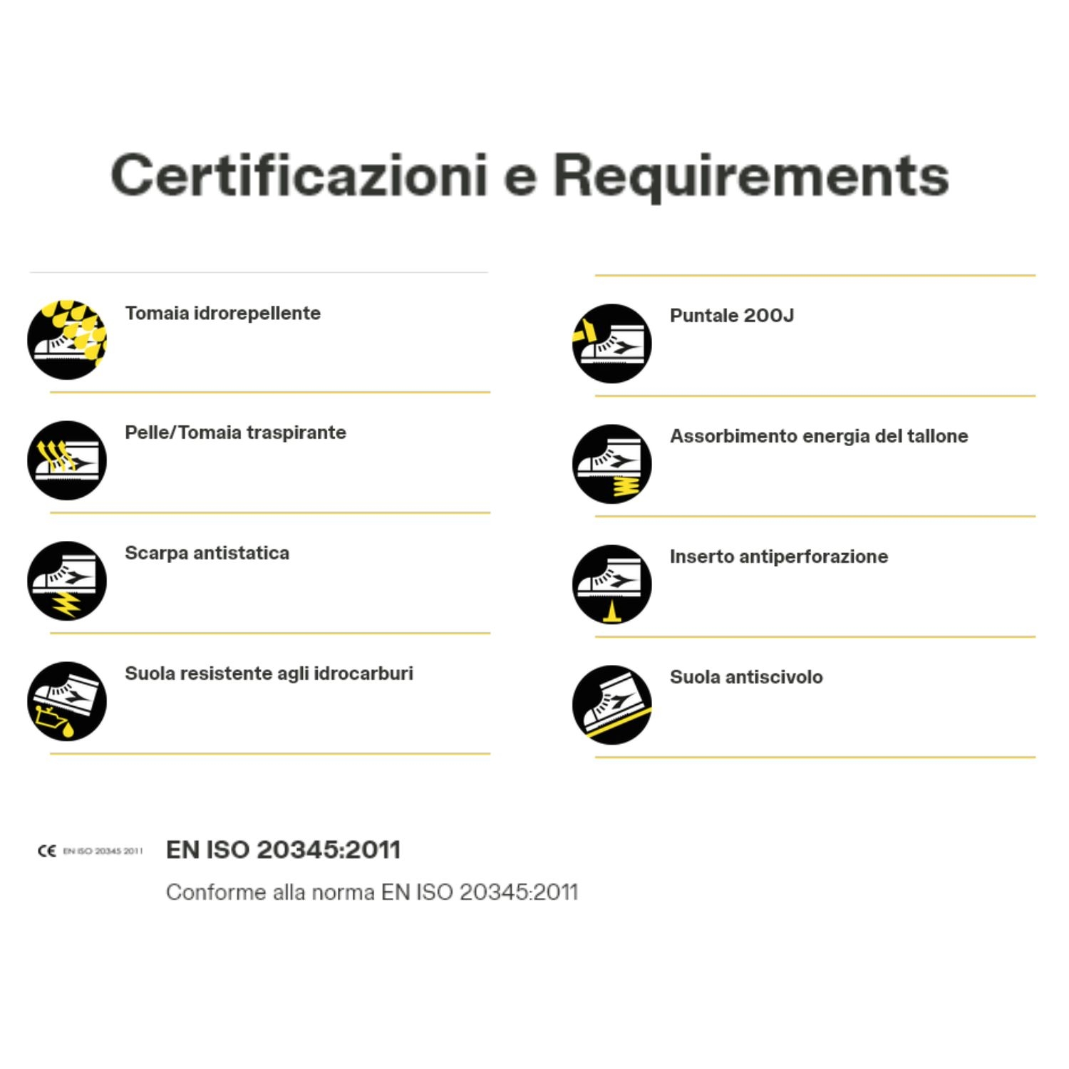 Caratteristiche principali: Puntale in acciaio 200J. Calzata 10. K SOLE, fodera in Air Mesh, plantare estraibile traspirante con carboni attivi. ESD.