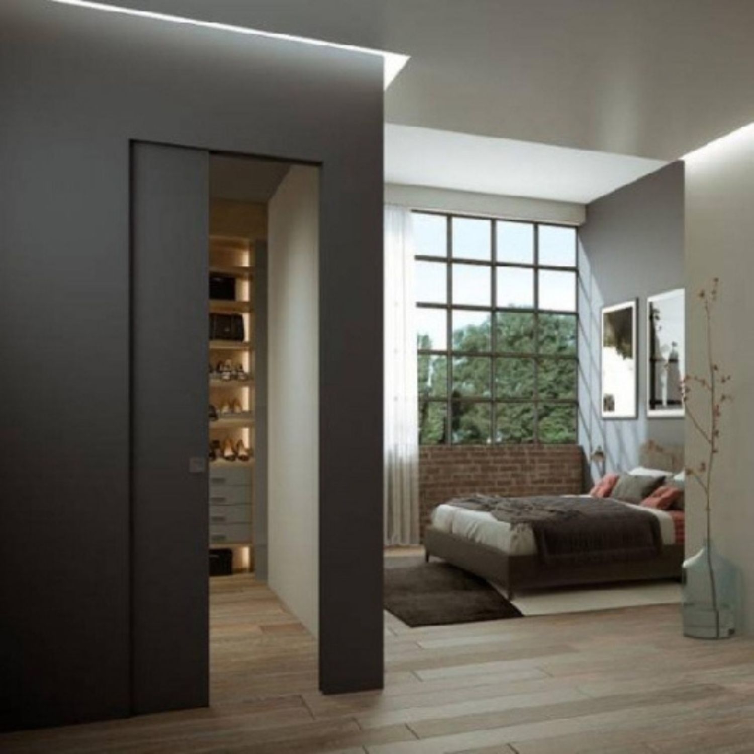 Controtelaio brevettato da Scrigno, privo di stipiti e cornici coprifilo, per un design impeccabile e in continuità con la parete. Pensato per la massima personalizzazione, è disponibile in svariate dimensioni, in versione per anta singola. Porta da acquistare separatamente