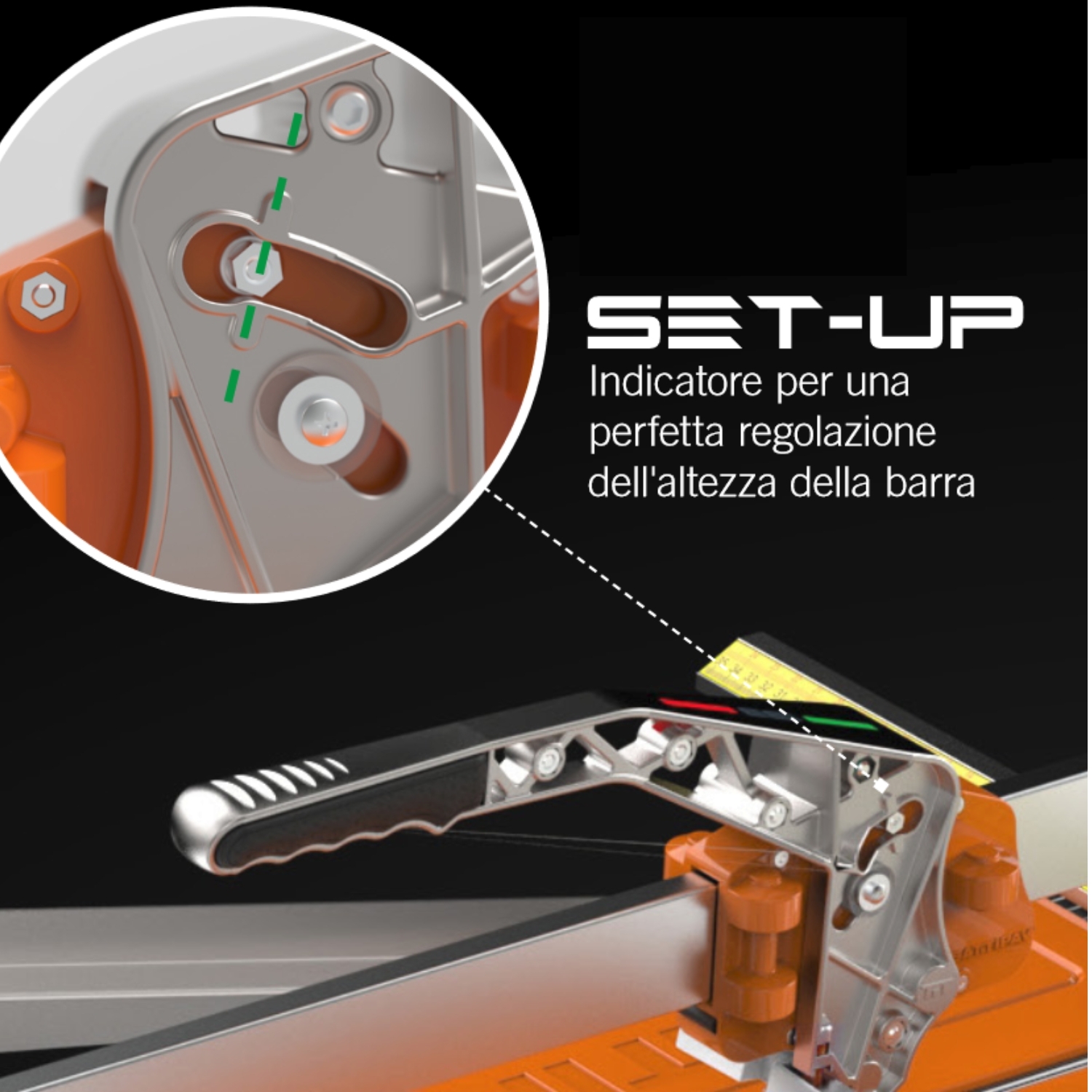 Coupe-carreaux « PUSH » super professionnel pour coupes droites et diagonales de céramique, monocuisson et grès. Longueur de coupe : 93 cm. Équerre rapporteur pour coupe diagonale, réglable de -45° à 0 à +45°.