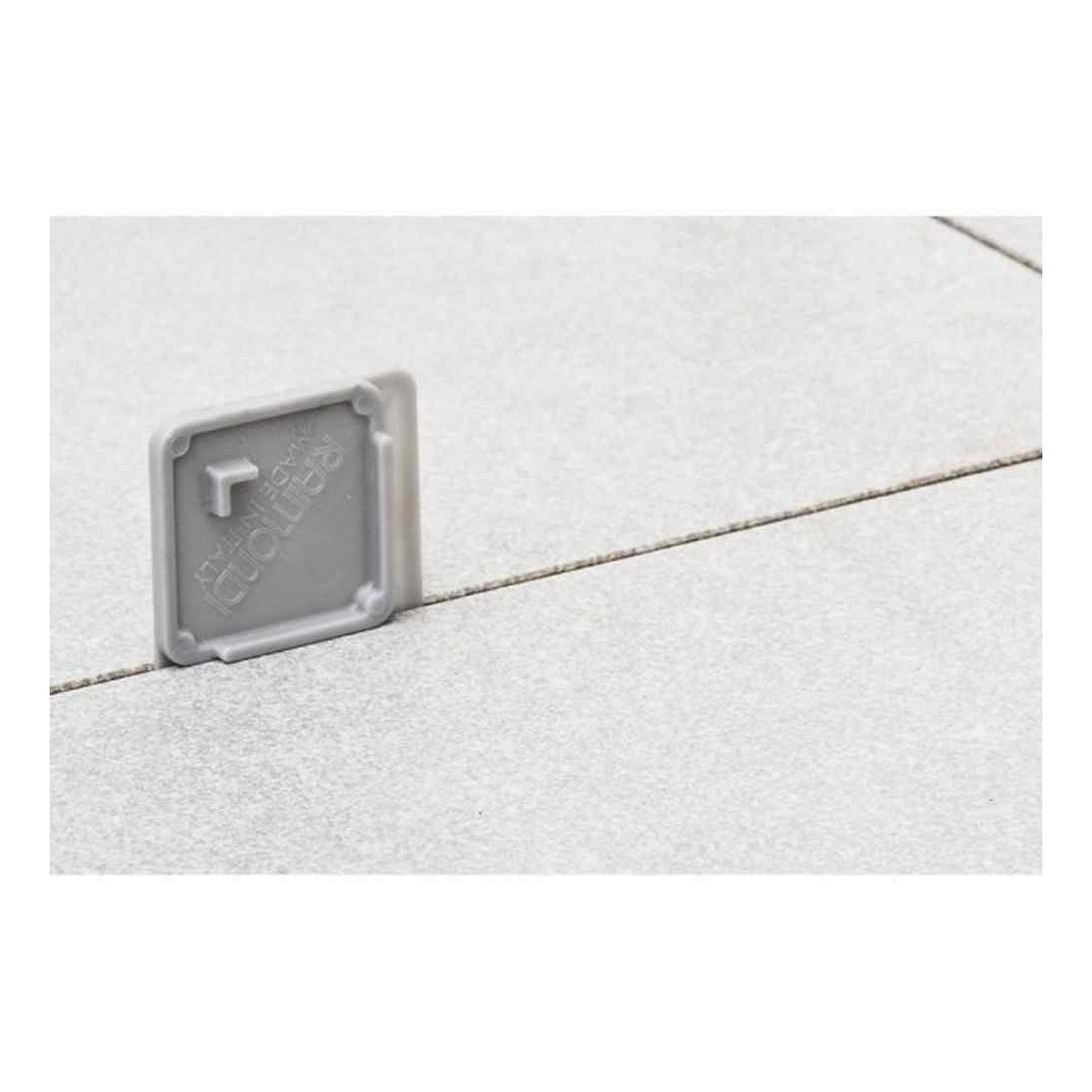 L'applicazione dei distanziatori è prevista sul lato della piastrella ed essendo piatta, può essere usata anche a filo pavimento e a filo muro