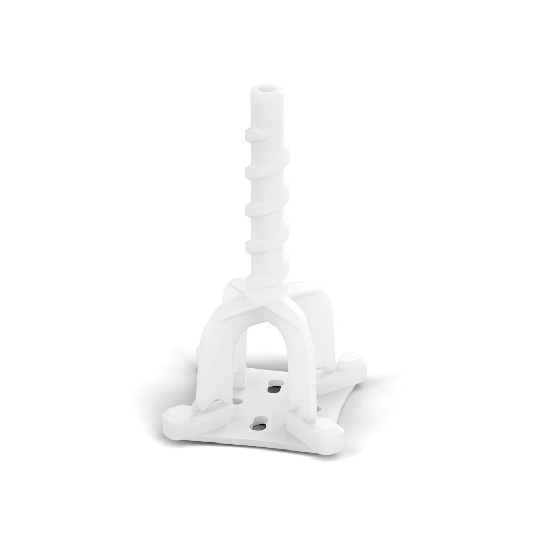 - Uno stelo filettato centralmente fissato ortogonalmente/ perpendicolarmente alla base con diversi punti a rottura facilitata permette, alla manopola (tirante) di serraggio di regolare la pressione esercitata sulla superficie e di livellare la pavimentazione e/o rivestimento in modo uniforme.