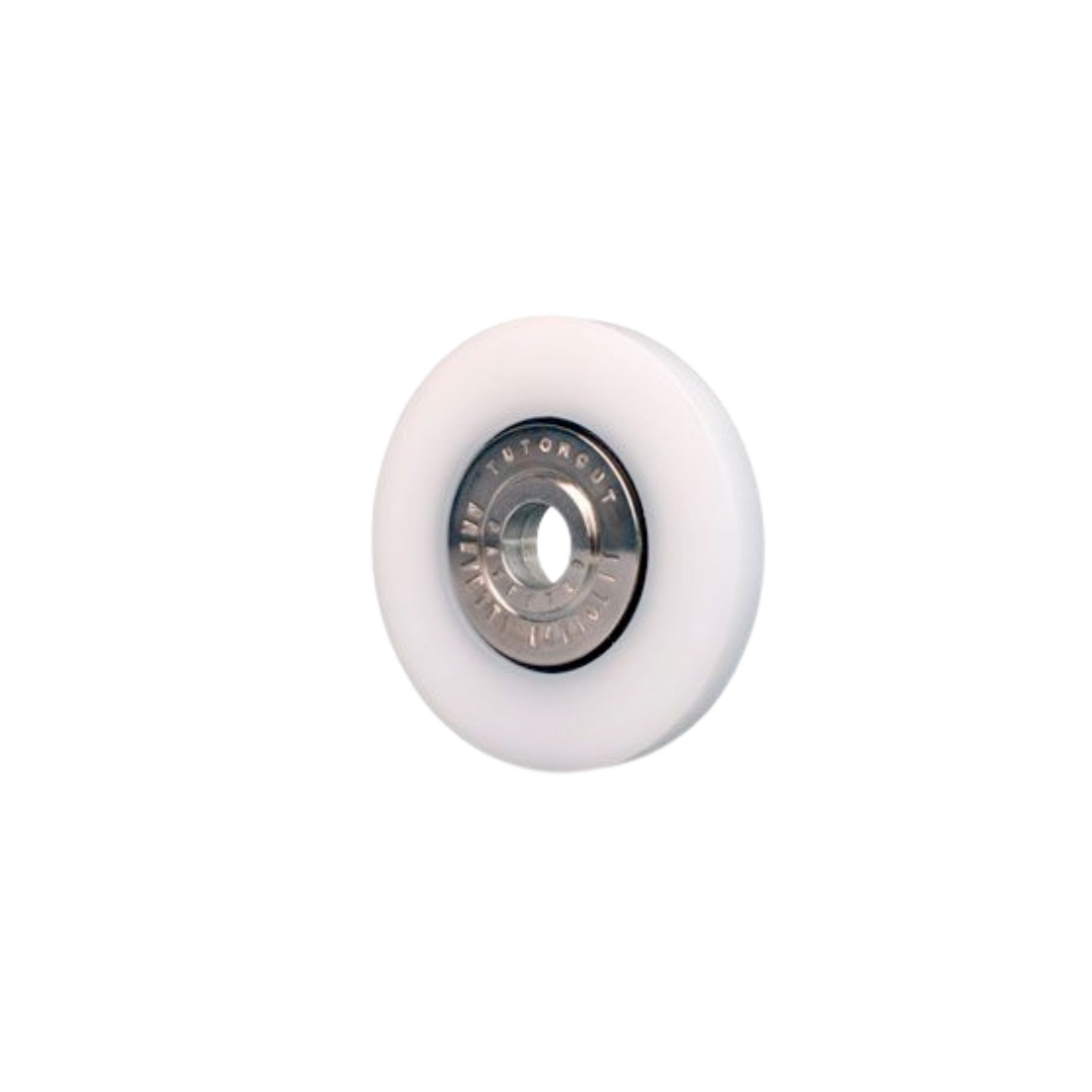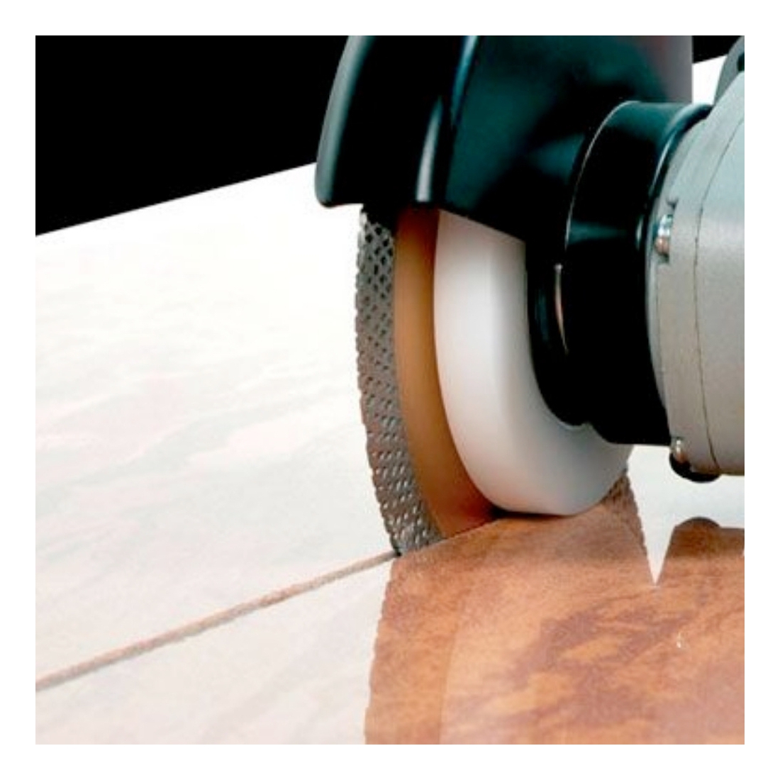 L’appoggio-guida di TutorCut, totalmente svincolato dalla rotazione dell’utensile, è realizzato in uno speciale Poliammide neutro per essere resistente all’usura ed evitare qualsiasi graffio alla superficie di lastre o piastrelle anche le più delicate e ruota su un cuscinetto a sfere sigillato a prova di polvere e detriti.
