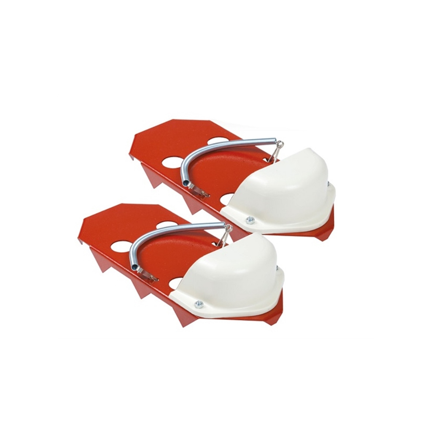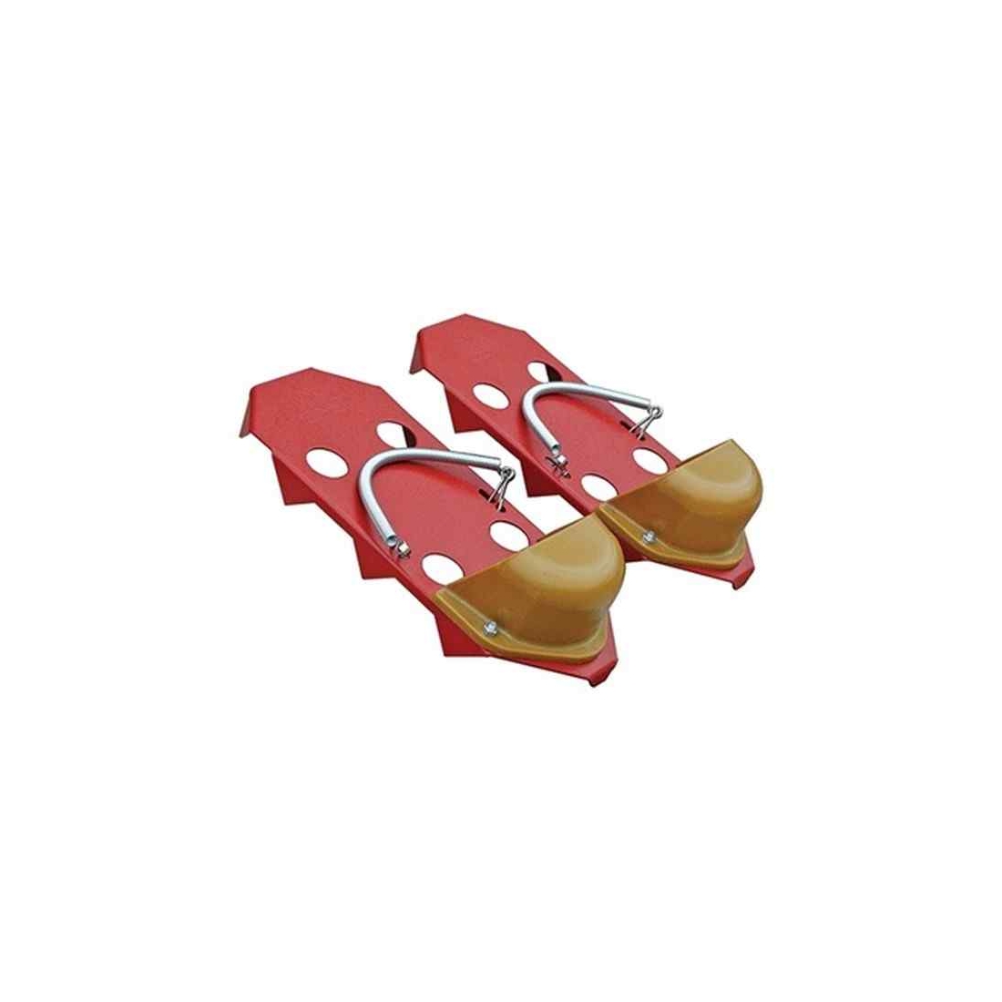 Ciabatte dentate per camminare sul pavimento durante la posa a colla, con base in acciaio, ferma punta in nylon intercambiabile, dimensionato per scarpe antinfortunistica. Il contatto con la superficie avviene tramite la punte, evitando così di rovinare la posa della colla appena stesa. Il fissaggio del piede avviene tramite una comoda e sicura molla, che mantiene il piede fermo durante il suo movimento.
