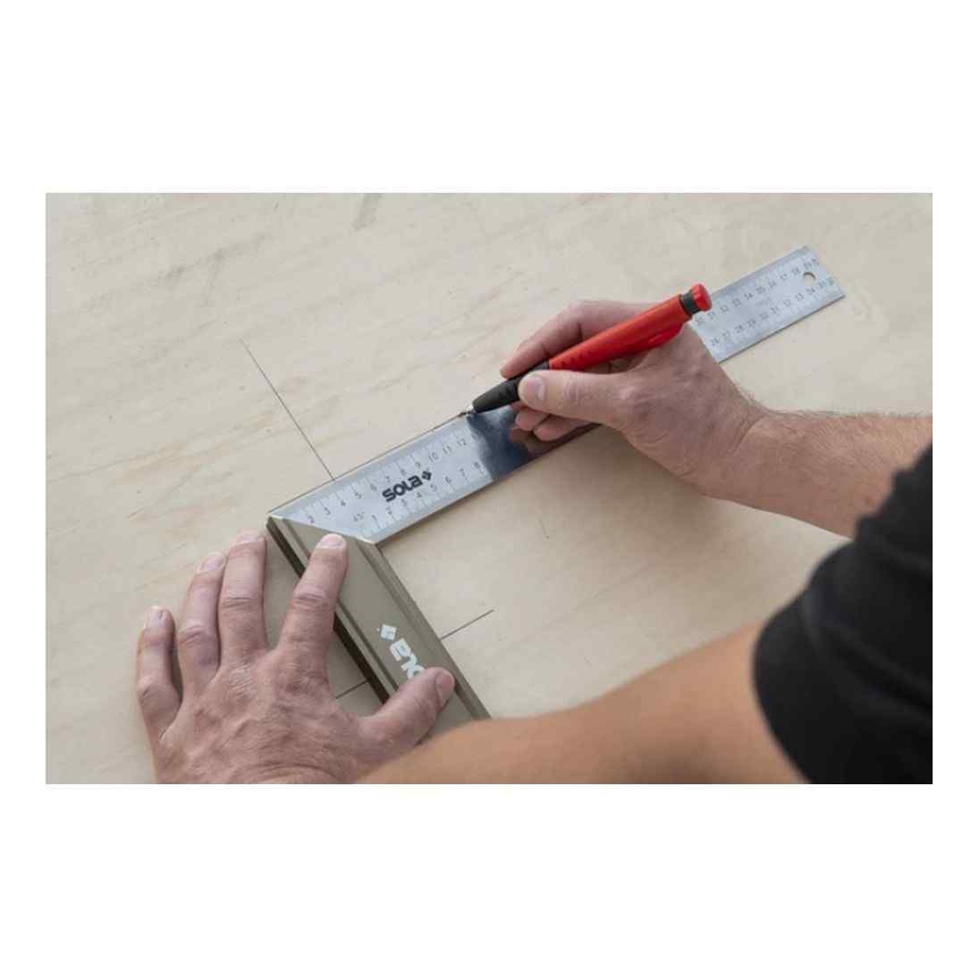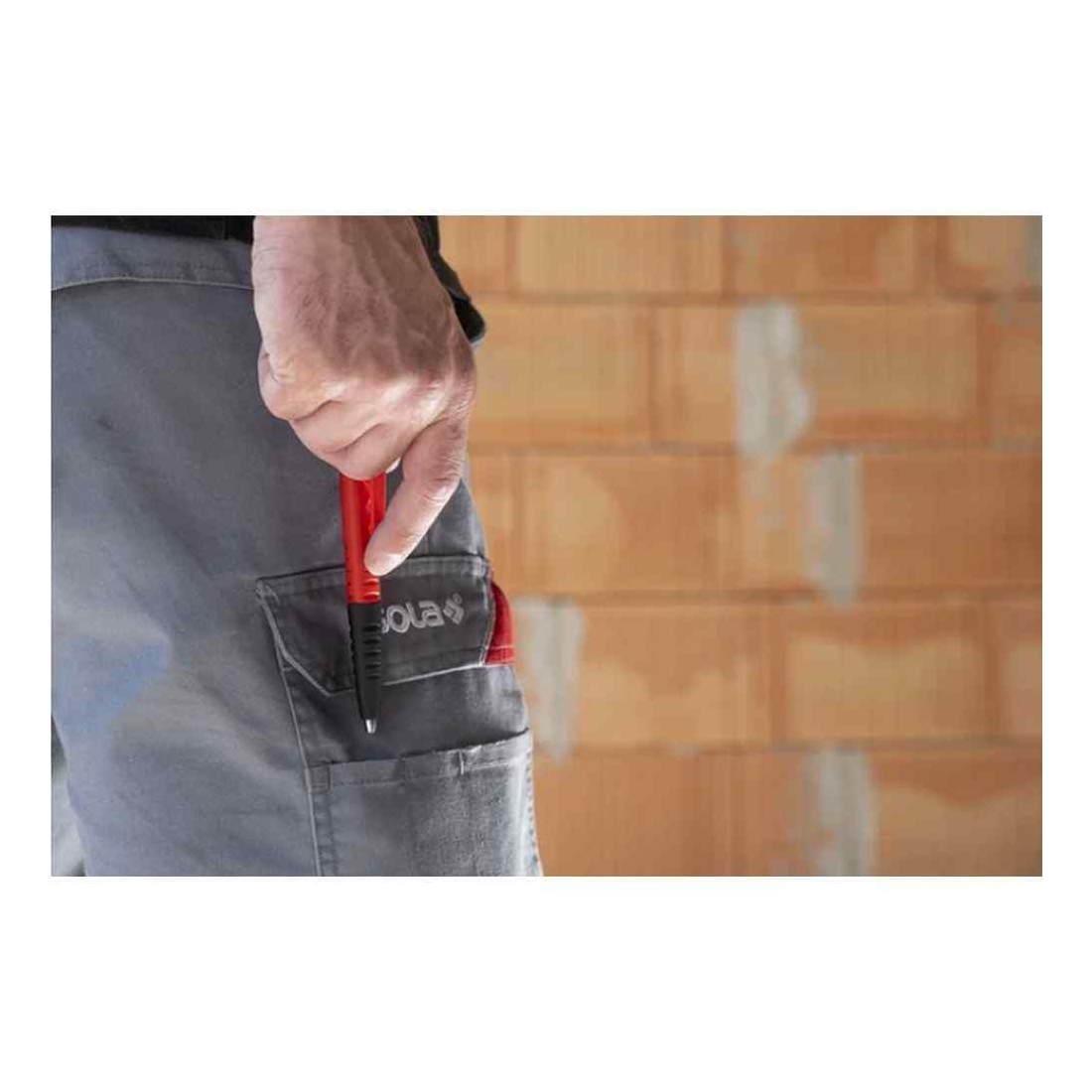 Marcatore dall'impugnatura svitabile che trasforma TLM in un portamina in pochi secondi. La speciale struttura consente di marcare fori profondi fino a 45 mm. Marcature esatte grazie al diametro della mina ridotto. Temperino integrato nel pulsante. Clip per cintura ABS resistente per una tenuta sicura.