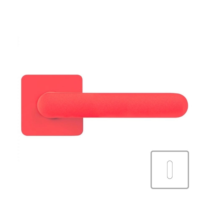 Maniglia per porta One Q della collezione Mood di Colombo Design su rosetta quadrata. Finitura: rossa/strawberry red
