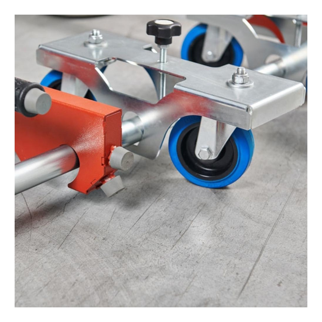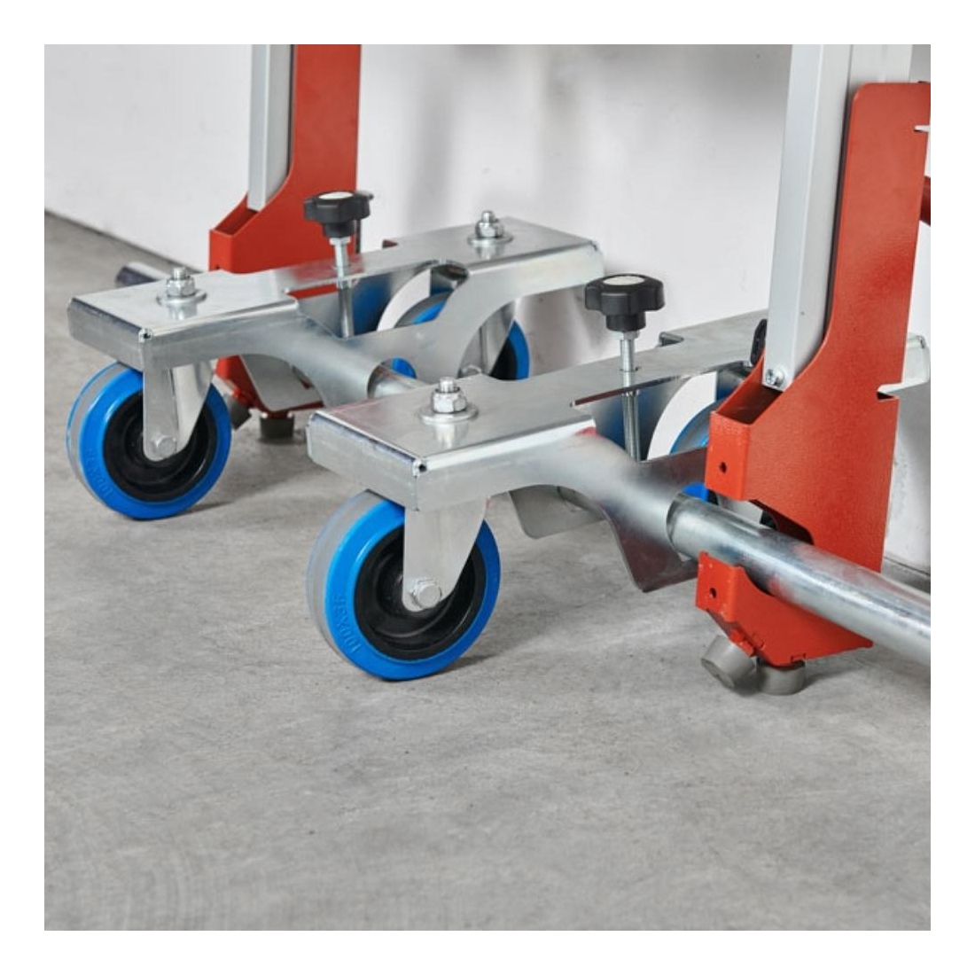 - carrello con 4 ruote piroettanti distanziabili tra loro