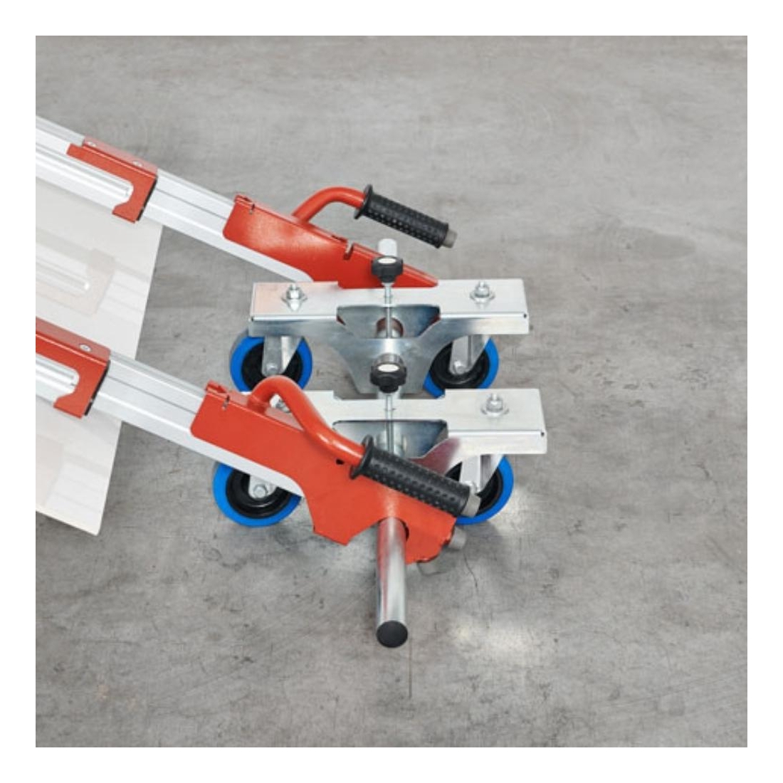 - un carrello con 4 ruote piroettanti distanziabili tra loro in funzione del formato della piastrella