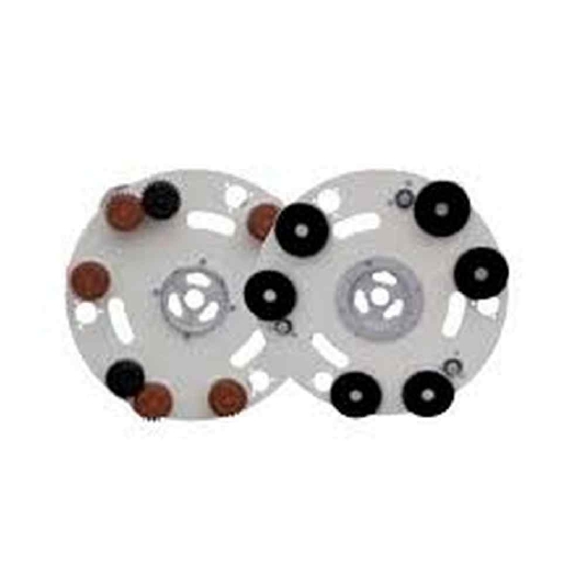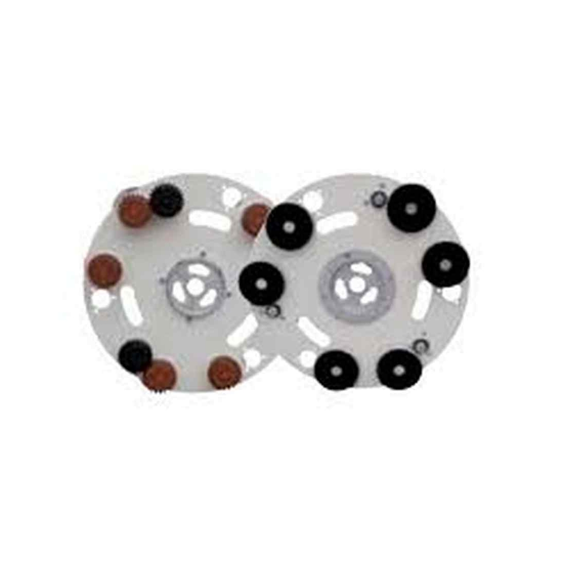 Disque planétaire avec 6 satellites motorisés, compatible avec les Monobrosses de ponçage Ipertitina et Ipertitina Plus. Le dispositif de transmission multiplie x 5 la vitesse de rotation du planétarium.