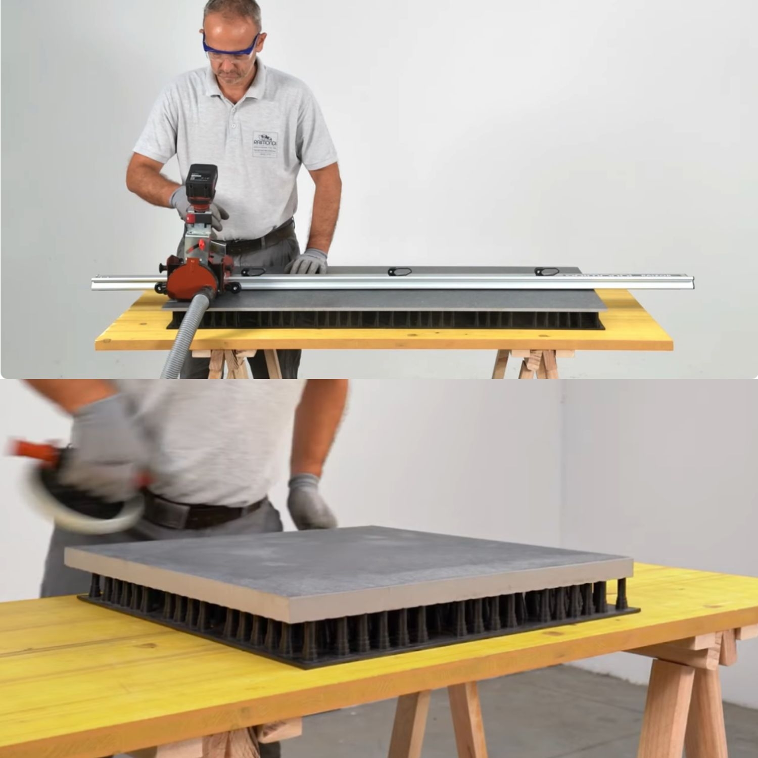 Tappetino multifunzionale in gomma UP! è il tappetino multifunzionale in gomma per posizionare le piastrelle per tagli, buchi, intagli, incollaggi e molto altro.