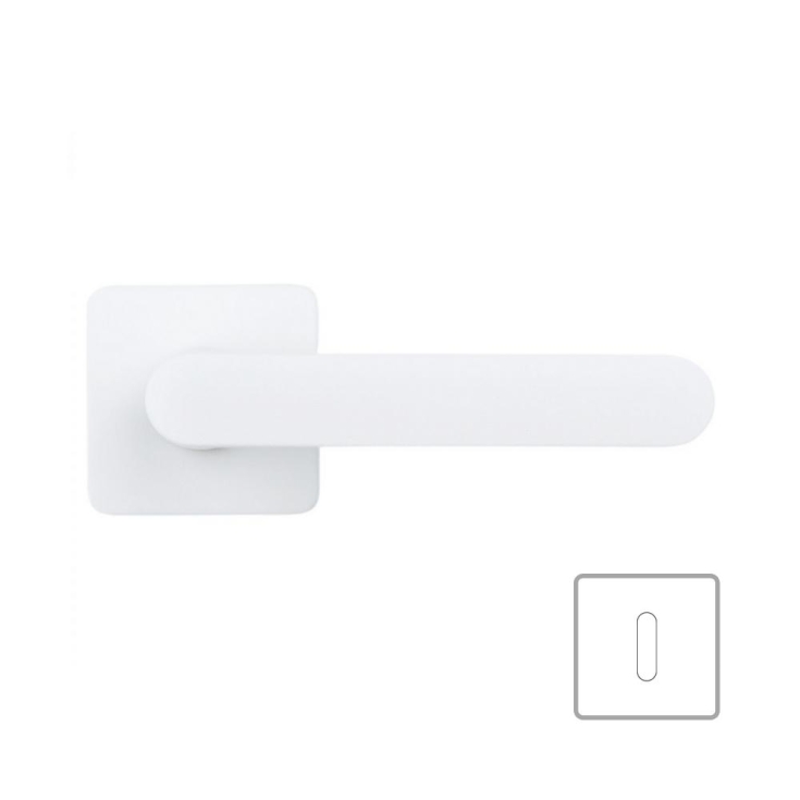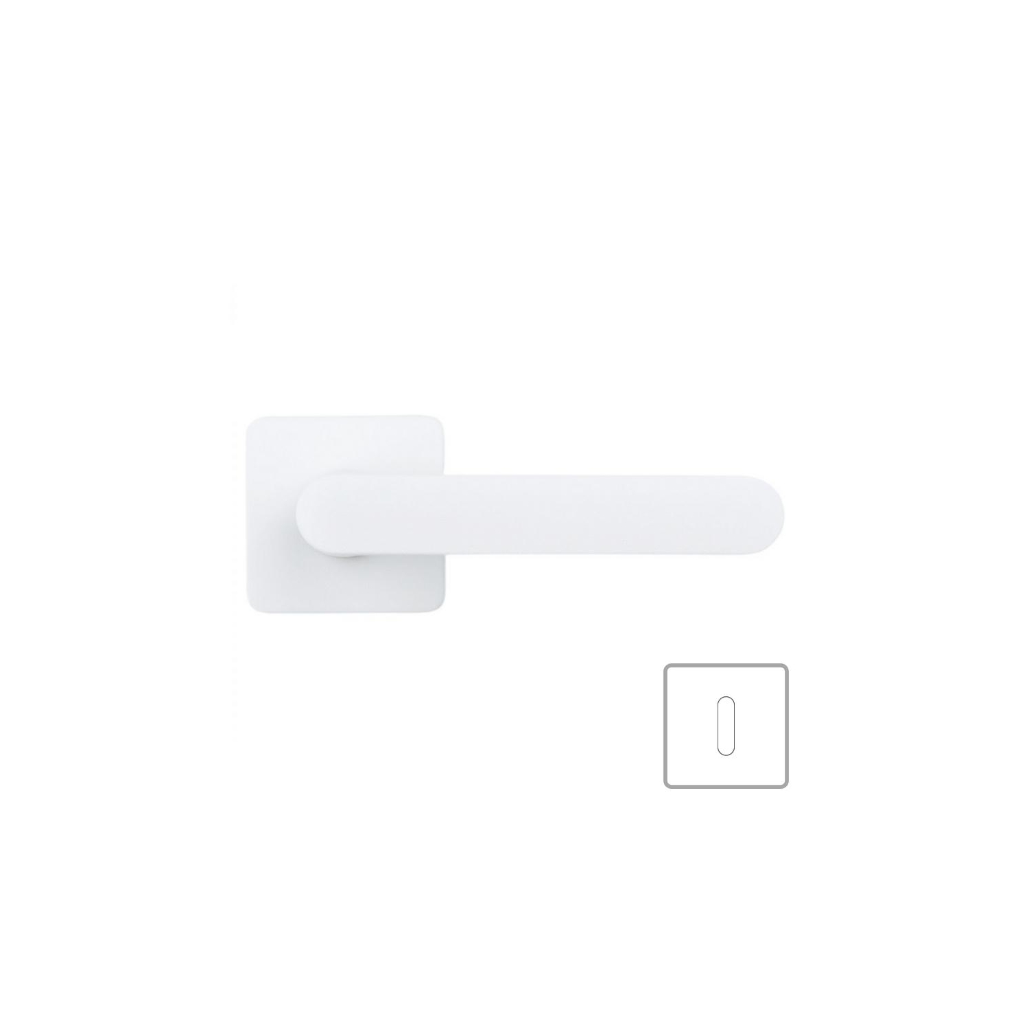 Maniglia per porta One Q della collezione Mood di Colombo Design su rosetta quadrata. Finitura: bianca/white