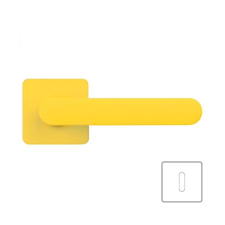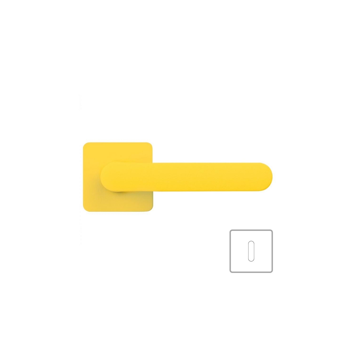 Maniglia per porta One Q della collezione Mood di Colombo Design su rosetta quadrata. Finitura: gialla/yellow