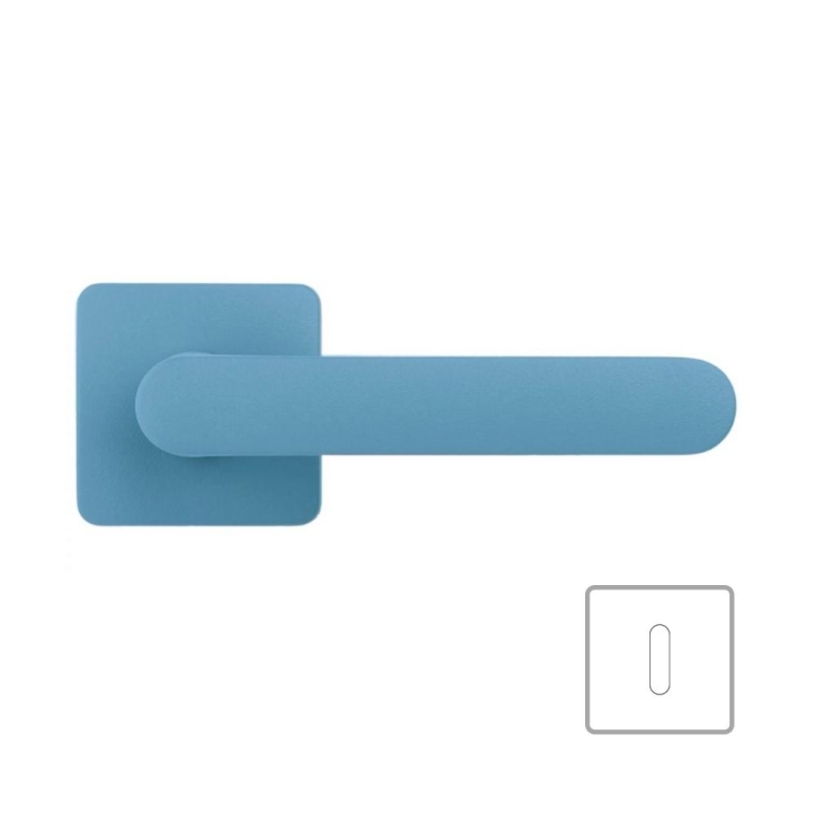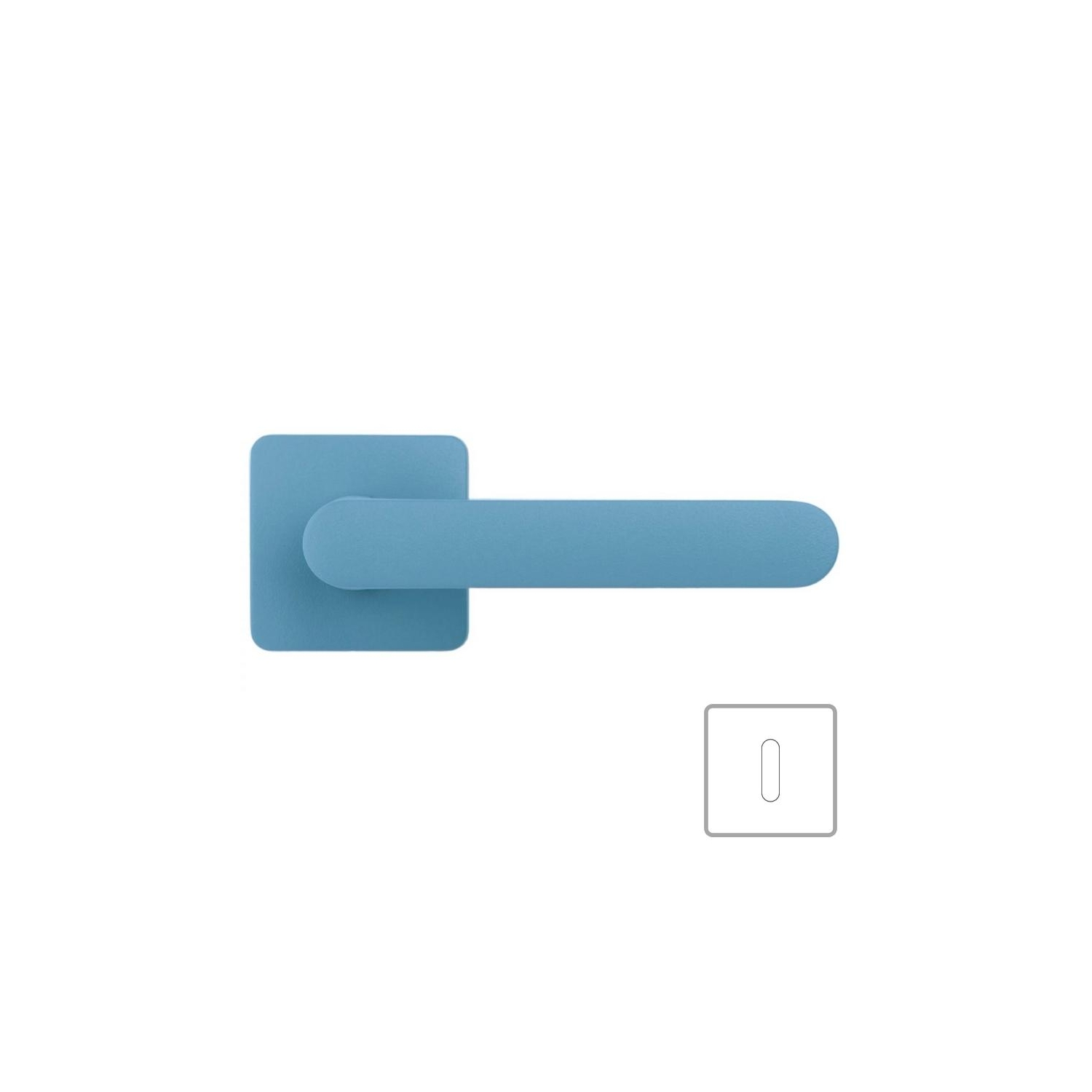 Maniglia per porta One Q della collezione Mood di Colombo Design su rosetta quadrata. Finitura: blu/ocean blu
