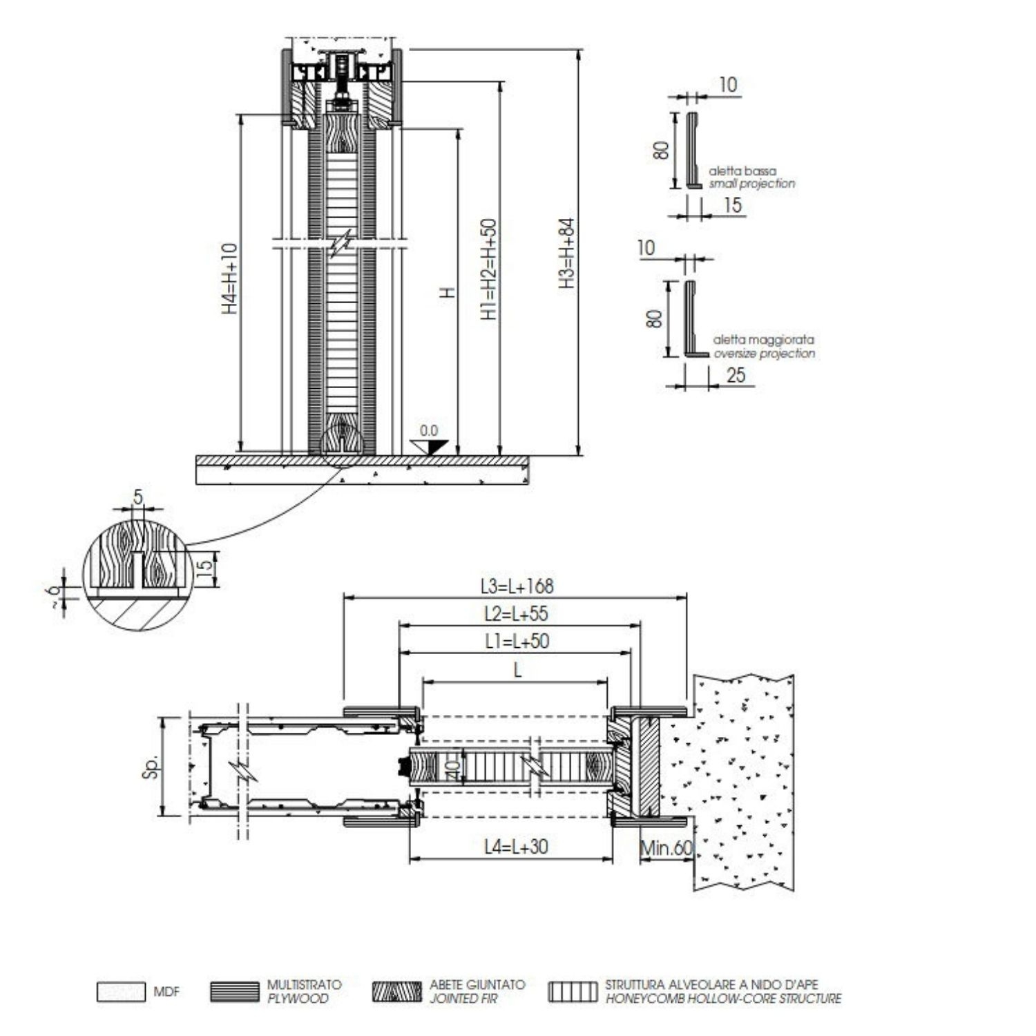 Porta in legno tamburato con telaio in abete giuntato rivestito da pannelli MDF. Compatibile con controtelai 100 mm: Magnifico - Maestro - Scrignotech - Openbox. Originale Scrigno
