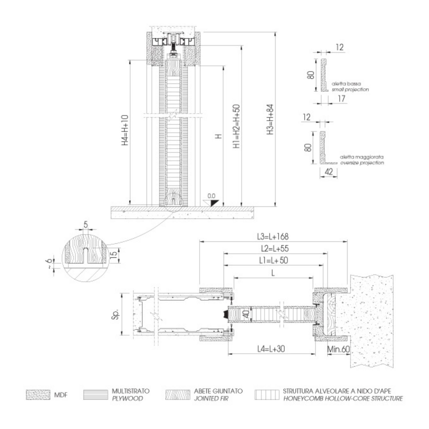 Porta in legno tamburato con telaio in abete giuntato rivestito da pannelli MDF. Compatibile con controtelai: Magnifico - Maestro - Scrignotech - Openbox. Originale Scrigno