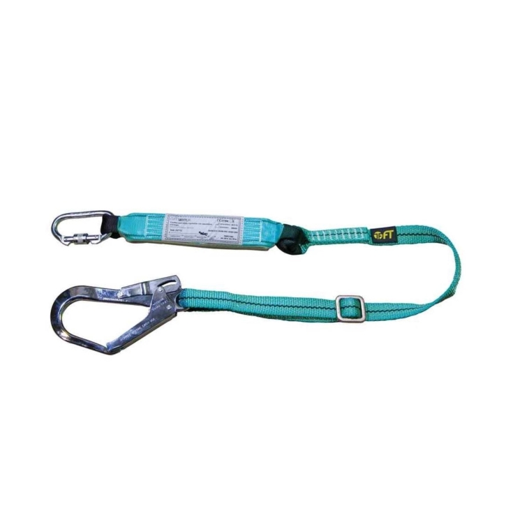 Longe antichute avec absorbeur d’énergie FT. Longueur réglable de : 1.35 à 1.80 mètres. Idéale pour l’accrochage aux échafaudages et structures métalliques.
