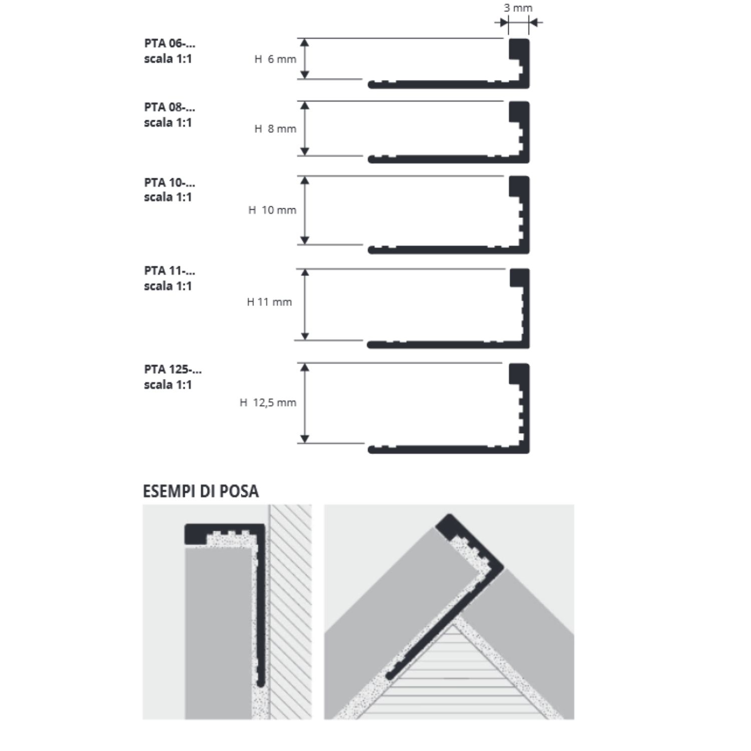 Profilo in alluminio verniciato a polvere 270 cm a forma di “L” idoneo a proteggere gli angoli esterni dei rivestimenti e per la loro chiusura perimetrale.