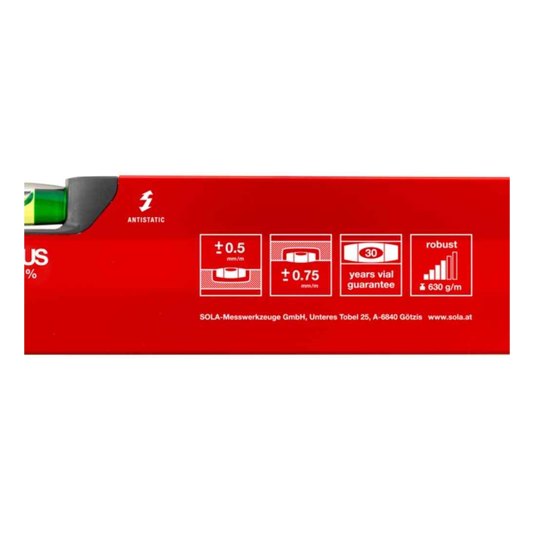 Niveau à 3 bulles d’air en profil tubulaire de couleur rouge de 100cm de Sola.
