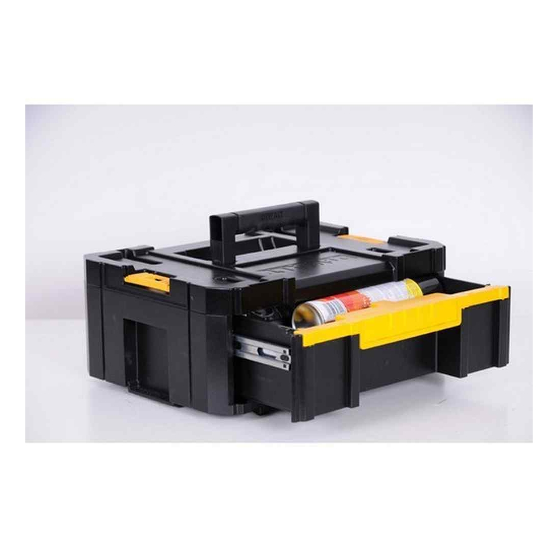 La valigetta T-Stak portautensili di DeWalt è con cassetto profondo, utilizzabile sia per la minuteria che per gli elettroutensili.